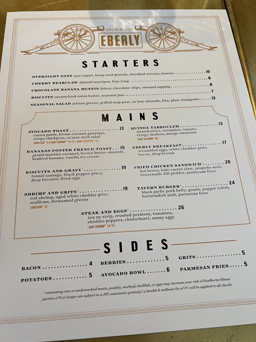 When it comes to the menu, Eberly truly shines. Indulge in their Brunch Mains such as the Bananas Foster French Toast, where rum caramel meets bruléed banana, paired with velvety vanilla ice cream for a sweet escape. Another crowd favorite is the Shrimp and Grits, boasting red shrimp served atop creamy aged white cheddar grits, finished with a bright touch of scallions and fermented greens. For those who crave a classic, the Biscuit and Gravy—fragrant fennel sausage served with fluffy drop biscuits and perfectly fried eggs—will leave you craving more.